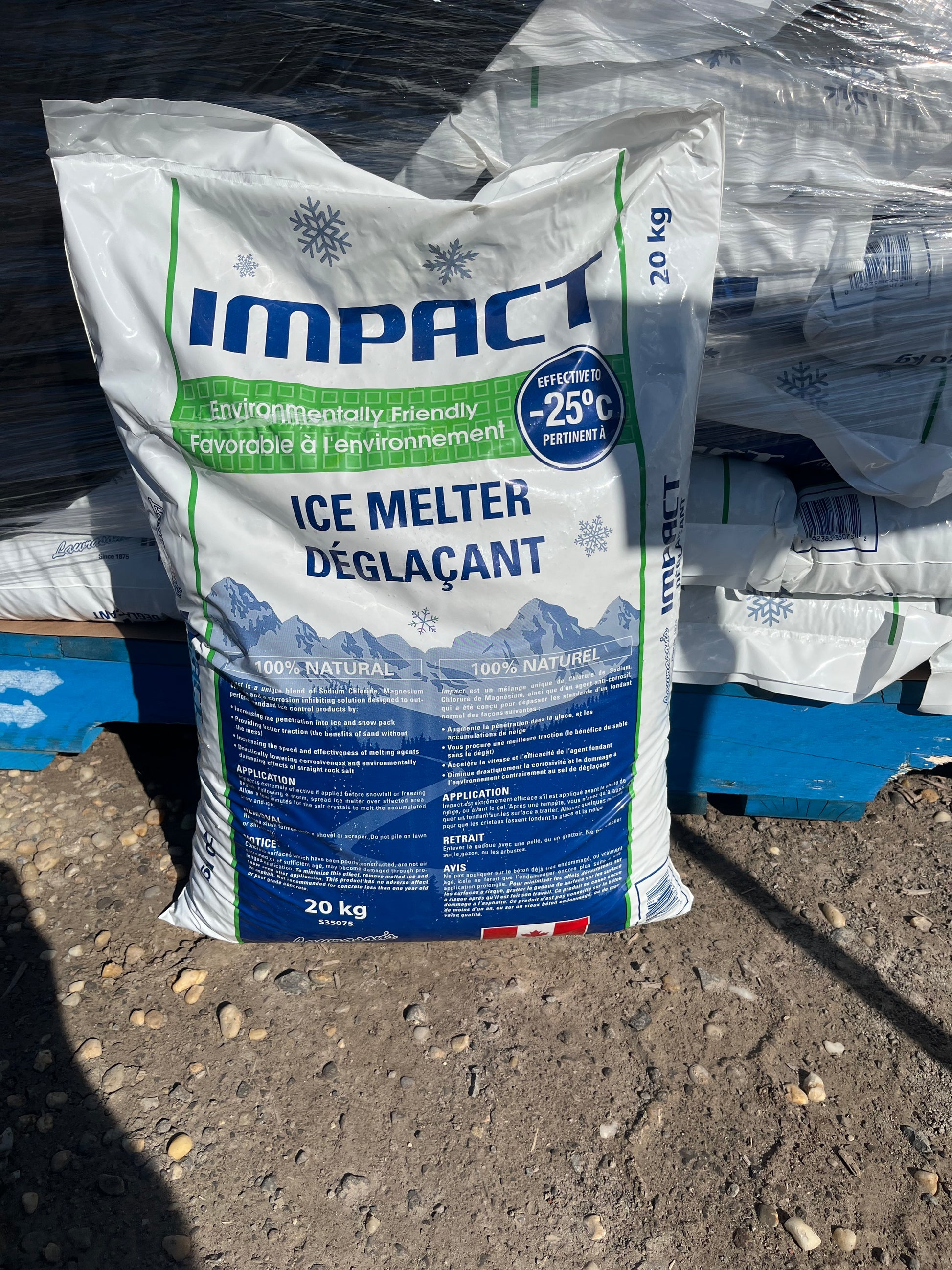 IMPACT ICE MELTER is 100% natural and is made up a propitiatory blend of Sodium, Magnesium Chloride and corrosion inhibiting additives.